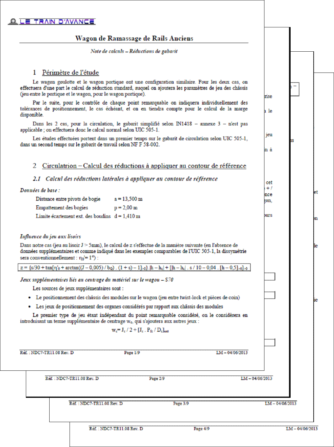 Tous ces paramètres doivent être pris en compte à chaque étape de la conception à la fabrication, et le plus souvent, font l'objet, dans leur globalité, d'un Dossiers Techniques d'homologation ferroviaire.
